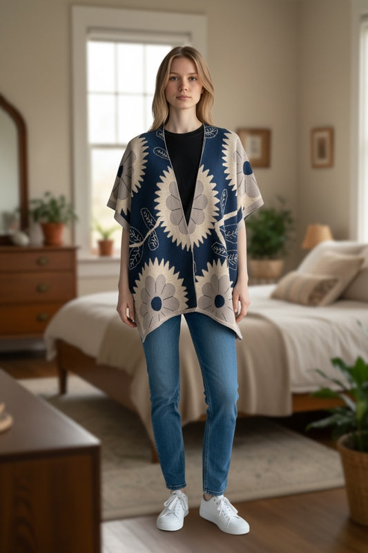 Capa para Dama cuello tortuga con dibujo a cuadros