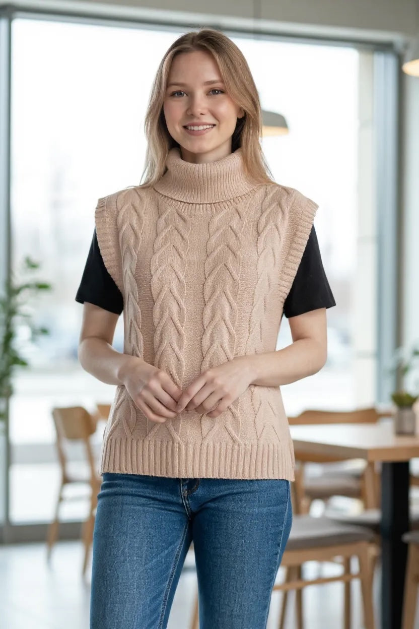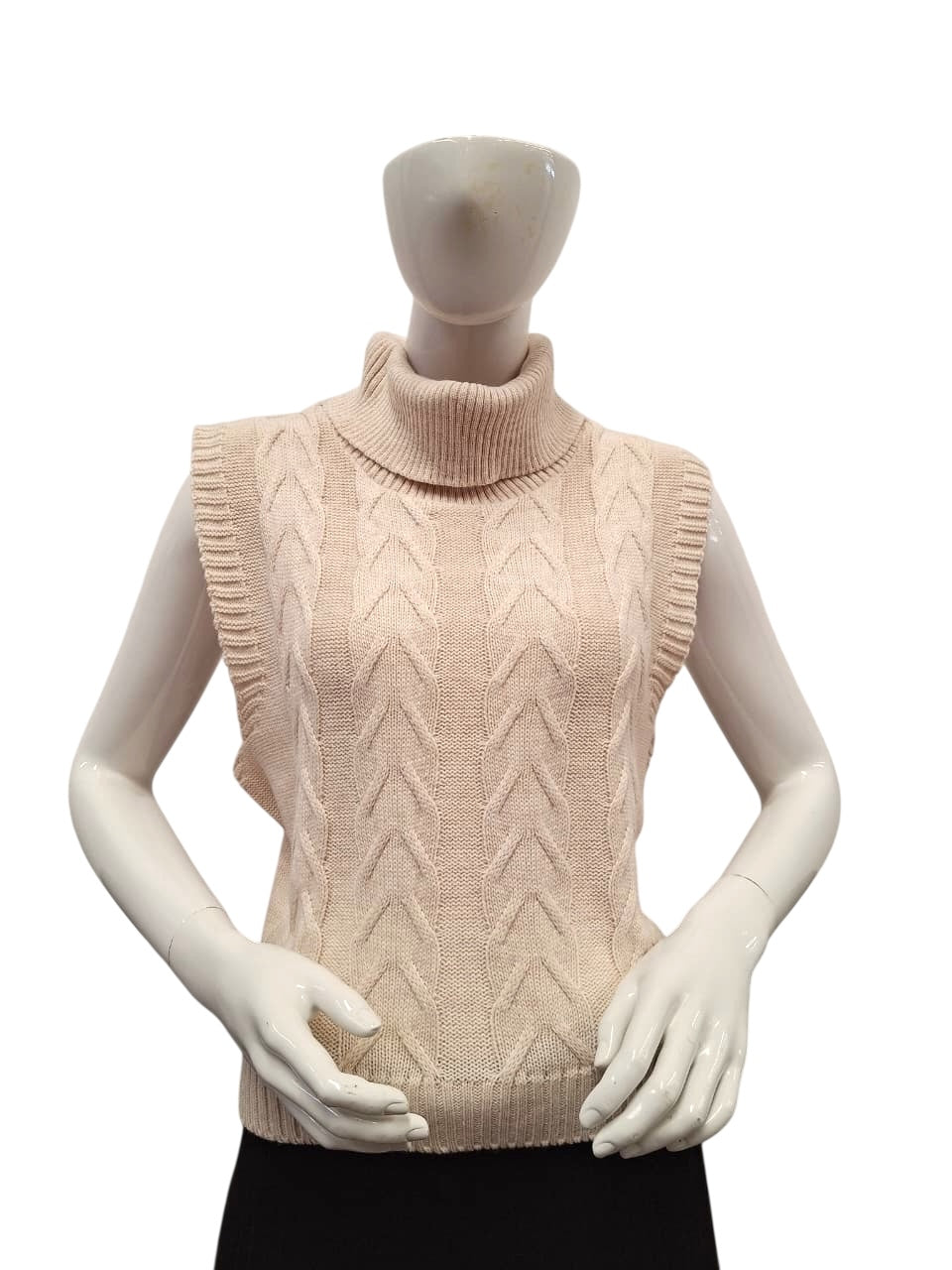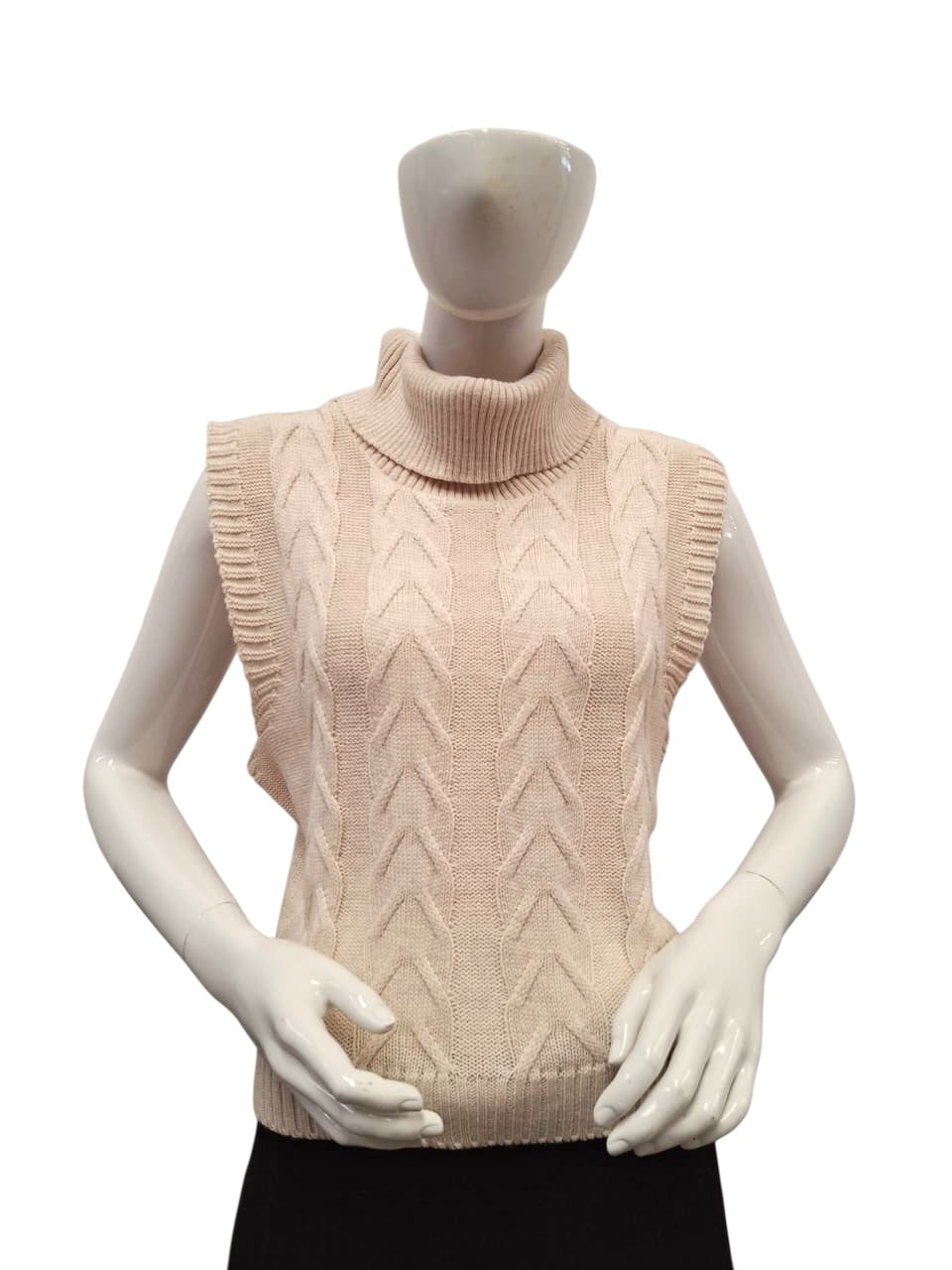 Chaleco cuello tortuga frente con tejido trenzado. Composición: 100% Acrílico Tacto Suave.